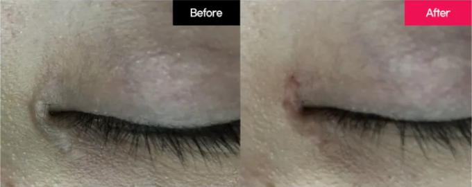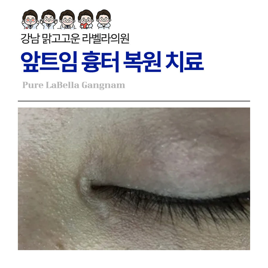 보통 앞트임 수술 흉터는 복원 수술을 많이 알아보시는데 저희 라벨라에서 치료를 진행해보면 복원 수술보다 비수술적 진피 리모델링 치료가 유리한 부분이 많은 것 같습니다.