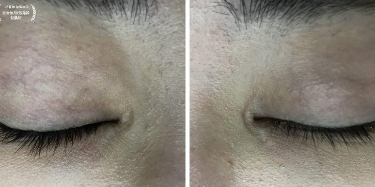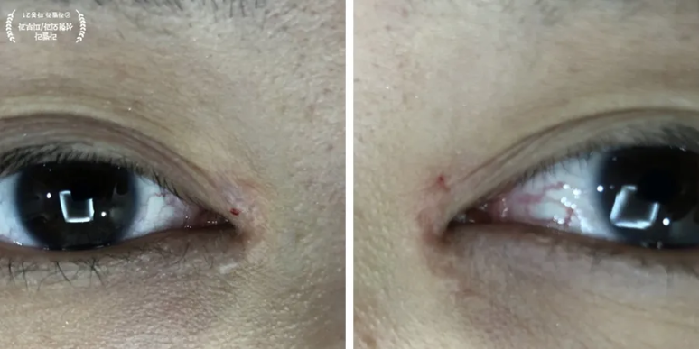 또한, 패인 앞트임 흉터가 상당히 많이 차오른 모습도 확인하실 수 있습니다.