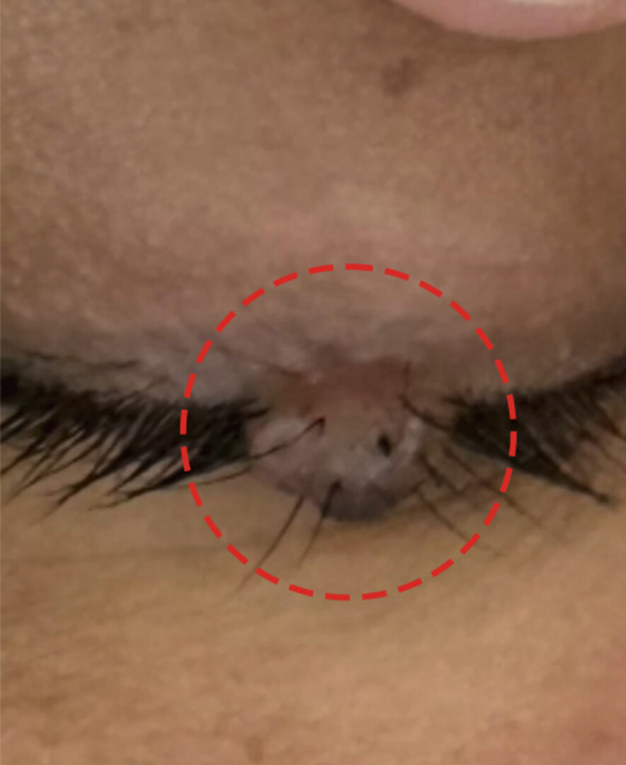 = 이렇게 큰 사이즈의 점을 한 번에 점의 뿌리까지 제거하게 되면, 제거 과정에서 모근이 손상될 가능성이 있고 저 점이 있는 부위만큼의 속눈썹이 영구적으로 소실될 수 있습니다.