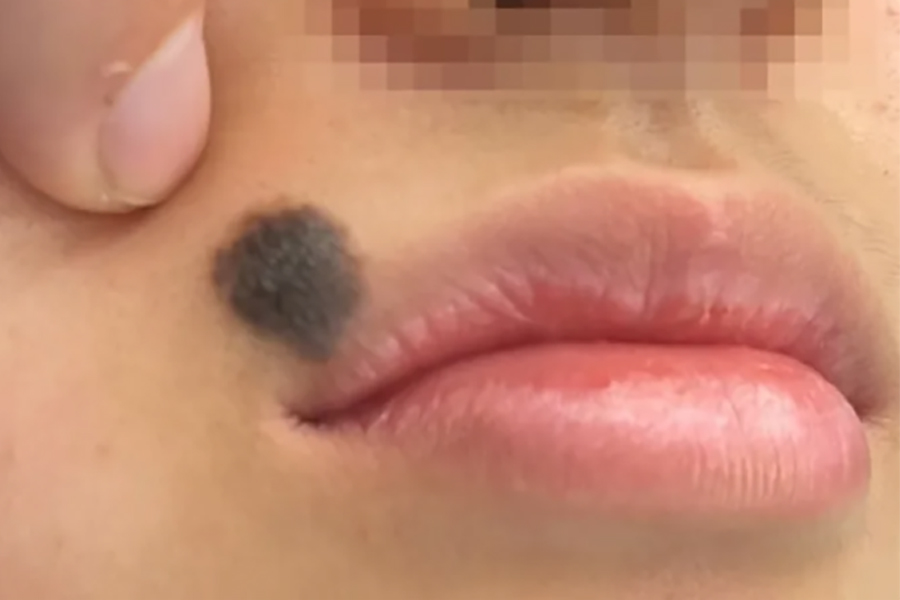 입술 라인을 침범한 입가 점, 입 주변 점?