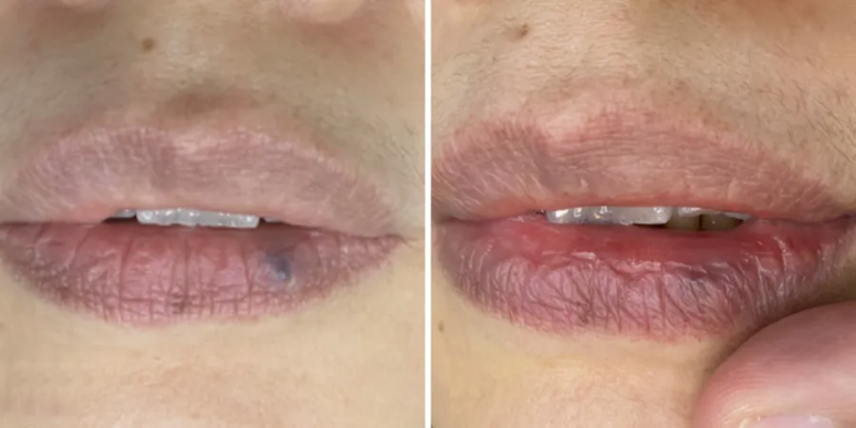 레이저 돌려깎기로 입술 라인을 살리며 수월하게 제거를 도와드렸고, 튀어나온 점이 깔끔하게 잘 제거된 것을 확인하실 수 있습니다.